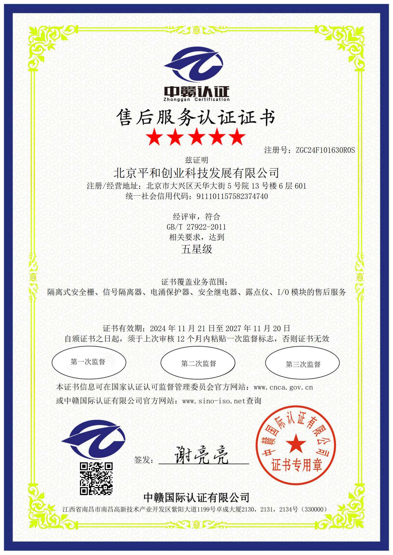 北京平和商品售后評(píng)價(jià)體系五星級(jí)認(rèn)證證書(shū)